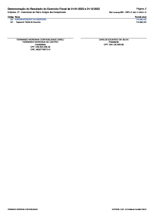 Demonstração do Resultado do Exercício 2022